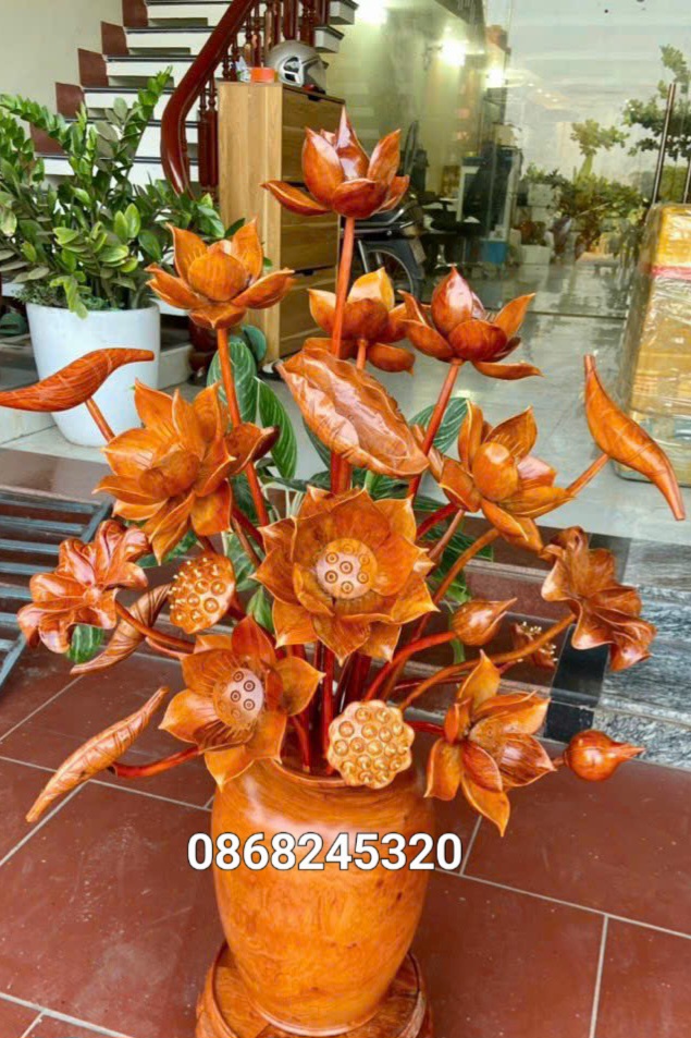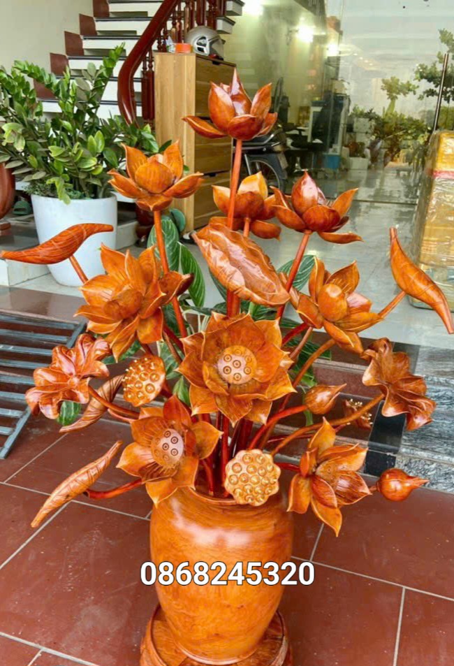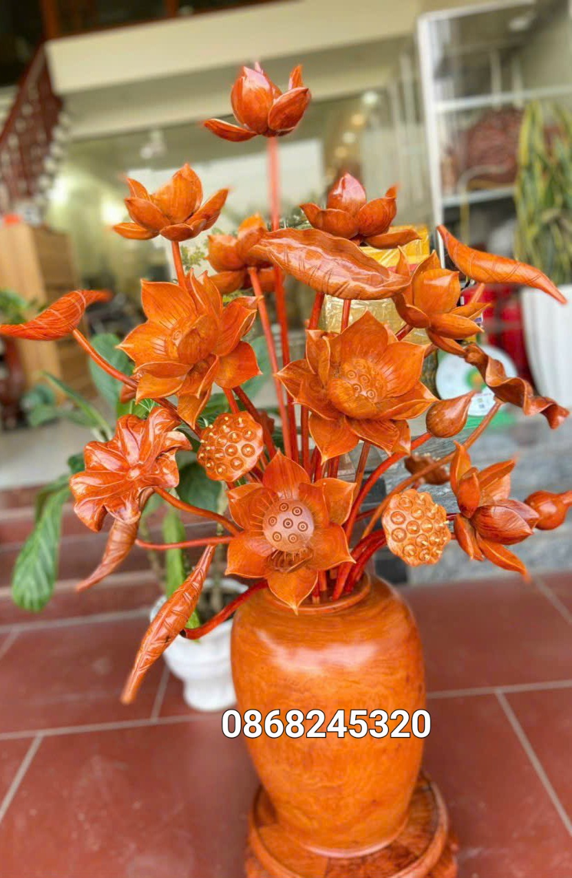 Cặp bình hoa sen gỗ hương đỏ đẹp 25 bông |zalo em hùng 0982638426