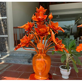 _ 1 bình hoa sen 21 cành trang trí phòng khách ,phòng thờ được làm bằng chất liệu gỗ ngọc am thơm nức tự nhiên 100%  _ Kt bình cắm hoa 20×23,5cm + hoa lá
