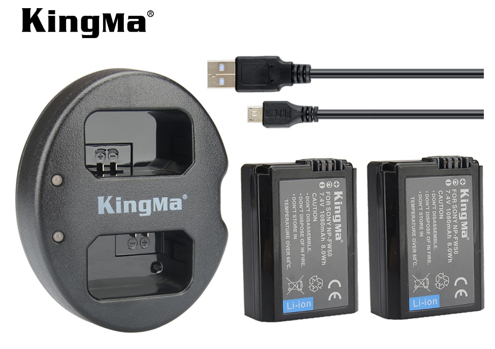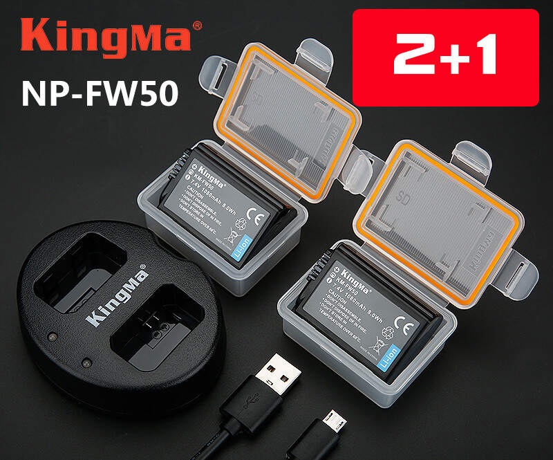 Bộ 1 pin 1 sạc đôi Kingma cho pin Sony NP-FW50 Thông tin sản phẩm: Pin Kingma for Sony NP-FW50 -Model: NP-FW50; -Điện áp 7.4V; -Công suất: 1080mAh 8.0Wh; -Loại pin: Pin Li-ion; -Kích thước: