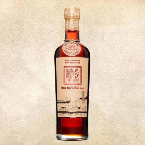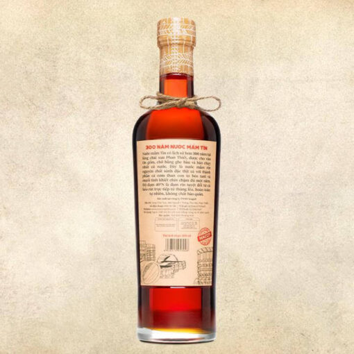Với công thức 300 năm từ Làng Chài Xưa, nước mắm Tĩn trứ danh ngày nay là nước mắm rin đặc sệt kéo rút trực tiếp từ thùng gỗ ủ chượp, chín chậm đủ 12 tháng với cá cơm than con to béo tươi và muối tinh khiết.