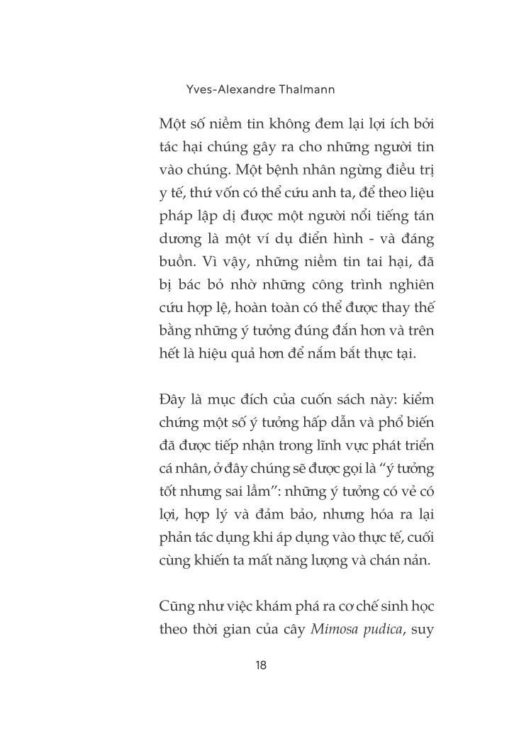 Trong cuốn sách 10 chìa khóa phát triển bản thân. Điều thực sự giúp bạn hạnh phúc, dựa trên những khám phá mới nhất trong lĩnh vực tâm lý học và khoa học nhận thức, Yves-Alexandre Thalmann đã vén bức màn về những niềm tin vô căn cứ đang dần đưa bạn cách xa cánh cửa của hạnh phúc.