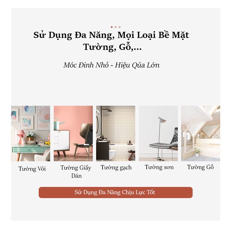 - Khi không dùng tháo ra lỗ đinh rất nhỏ không làm ảnh hưởng mảng tường.