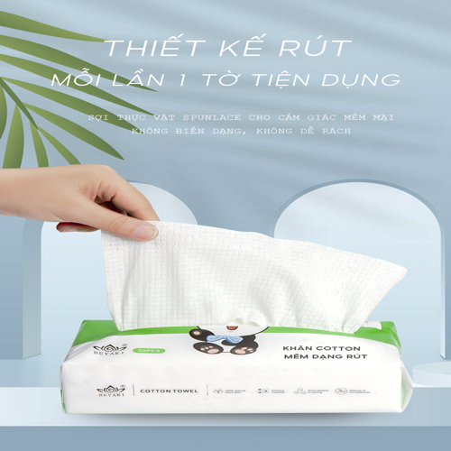 Thông Tin Sản Phẩm: • Thương hiệu: Beyaki (Việt Nam) • Số lượng: 50 tờ/gói - Kích thước 20x20cm mỗi tờ • Thành phần: 100% bông cotton tự nhiên • Made in PRC Tiện Ích