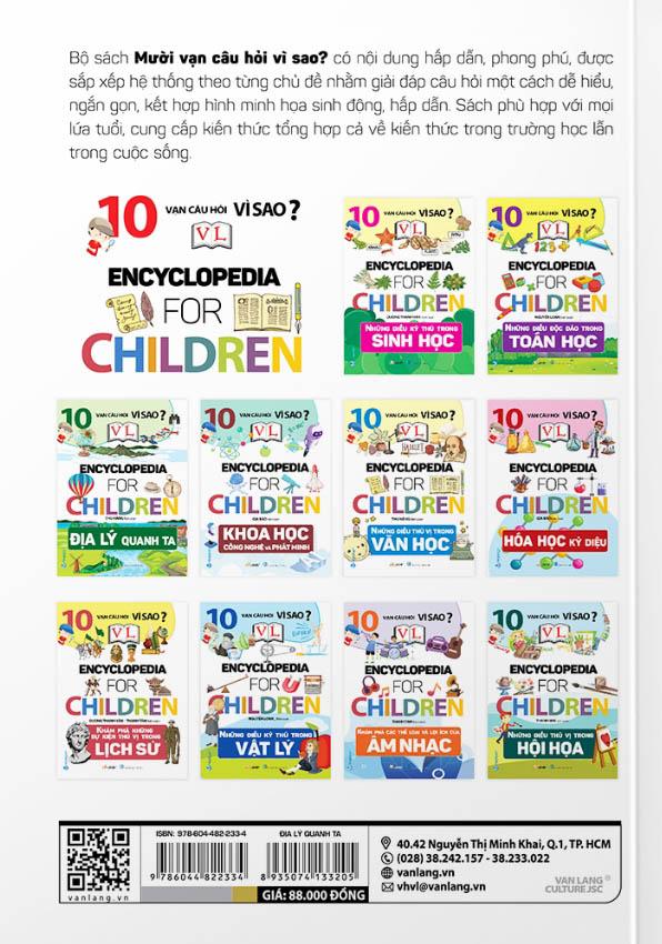 10 Vạn Câu Hỏi Vì Sao? - Địa Lý Quanh Ta Bộ sách Mười vạn câu hỏi vì sao? có nội dung hấp dẫn, phong phú, được sắp xếp hệ thống theo từng chủ đề nhằm giải đáp câu hỏi một cách dễ hiểu, ngắn gọn, kết hợp hình minh họa sinh động, hấp dẫn. Sách phù hợp với mọi lứa tuổi, cung cấp kiến thức tổng hợp cả về kiến thức trong trường học lẫn trong cuộc sống.