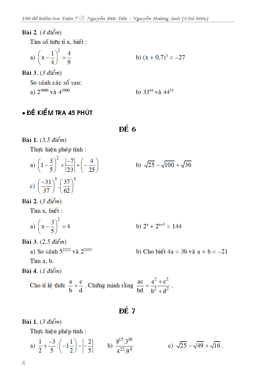 ✨ 100 Đề Kiểm Tra Toán 7 _KV