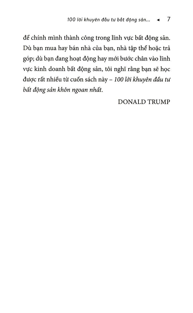 Trong số những người đóng góp cho cuốn sách này, có người là bạn tôi, cũng có người tôi chưa từng gặp mặt, dù tôi luôn ngưỡng mộ họ từ xa. Cuốn sách này là bản tóm tắt hoàn hảo nhất những lời khuyên trong kinh doanh bất động sản được thu thập từ trước tới nay. Và tôi cho rằng nó đã hoàn tất sứ mệnh của mình: cung cấp cho bạn những lời khuyên bổ ích, giúp bạn lập kế hoạch để chính mình thành công trong lĩnh vực bất động sản. Dù bạn mua hay bán nhà của bạn, nhà tập thể hoặc trả góp; dù bạn đang hoạt động hay mới bước chân vào lĩnh vực kinh doanh bất động sản, tôi nghĩ rằng bạn sẽ học được rất nhiều từ cuốn sách này - Lời Khuyên Hay Nhất Trong Kinh Doanh Bất Động Sản Mà Tôi Nhận Được.