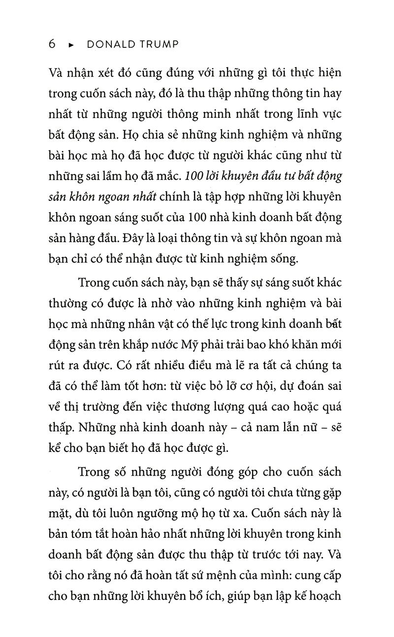 Lời Khuyên Hay Nhất Trong Kinh Doanh Bất Động Sản Mà Tôi Nhận Được chính là tập hợp những lời khuyên khôn ngoan sáng suốt của 100 nhà kinh doanh bất động sản hàng đầu. Đây là loại thông tin và sự khôn ngoan mà bạn chỉ có thể nhận được từ kinh nghiệm sống.