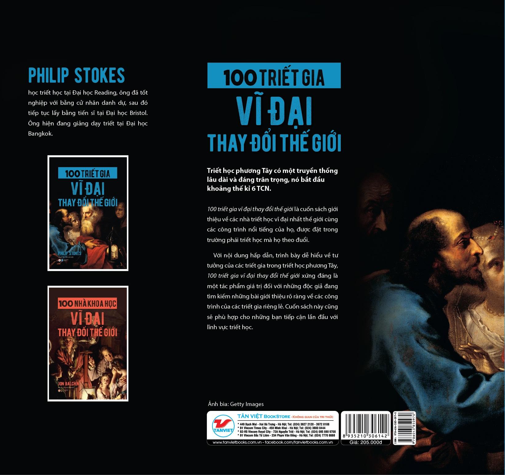 Triết học là bộ môn ra đời từ rất lâu, kể từ khi con người có tư duy, biết hỏi về bản chất của cuộc sống, con người và vũ trụ. Triết gia Voltaire từng phát biểu: “Khám phá ra điều gì đúng và thực hành điều gì tốt, đó là hai mục tiêu quan trọng nhất của Triết học”. Bởi thế, bộ môn này ngay từ khi ra đời đã có ảnh hưởng sâu rộng đến con người ở mọi tầng lớp, mọi nghề nghiệp trong xã hội. Bao quát tư tưởng triết học, khoa học, chính trị và tôn giáo trong khoảng thời gian 2.500 năm, 100 Triết Gia Vĩ Đại Thay Đổi Thế Giới là cuốn sách chỉ dẫn tuyệt vời về lịch sử triết học và những tiến bộ con người đã đạt được trong việc giải thích thế giới xung quanh. Hơn thế, với nội dung hấp dẫn, cách truyền tải dễ tiếp cận, cuốn sách sẽ đưa độc giả tiếp cận những quan điểm, tư tưởng của 100 triết gia vĩ đại trong nền triết học phương Tây, có thể kể tới như: Aristotle, Jean-Jacques Rousseau, Karl Marx, Simone de Beauvoir, Noam Chomsky, WVO Quine… Bằng cách trình bày chi tiết về cuộc sống của các nhà triết học cũng như những mối quan tâm và hoàn cảnh sống đã thúc đẩy họ, cuốn sách 100 Triết Gia Vĩ Đại Thay Đổi Thế Giới đã làm cho triết học trở nên sống động hơn, mở ra cách tiếp cận đơn giản, phù hợp và có ý nghĩa để suy nghĩ về thế giới đương đại. Thông tin tác giả: Philip Stokes học triết học tại Đại học Reading, ông đã tốt nghiệp với bằng cử nhân danh dự, sau đó tiếp tục lấy bằng tiến sĩ tại Đại học Bristol. Ông hiện đang giảng dạy triết tại Đại học Bangkok.