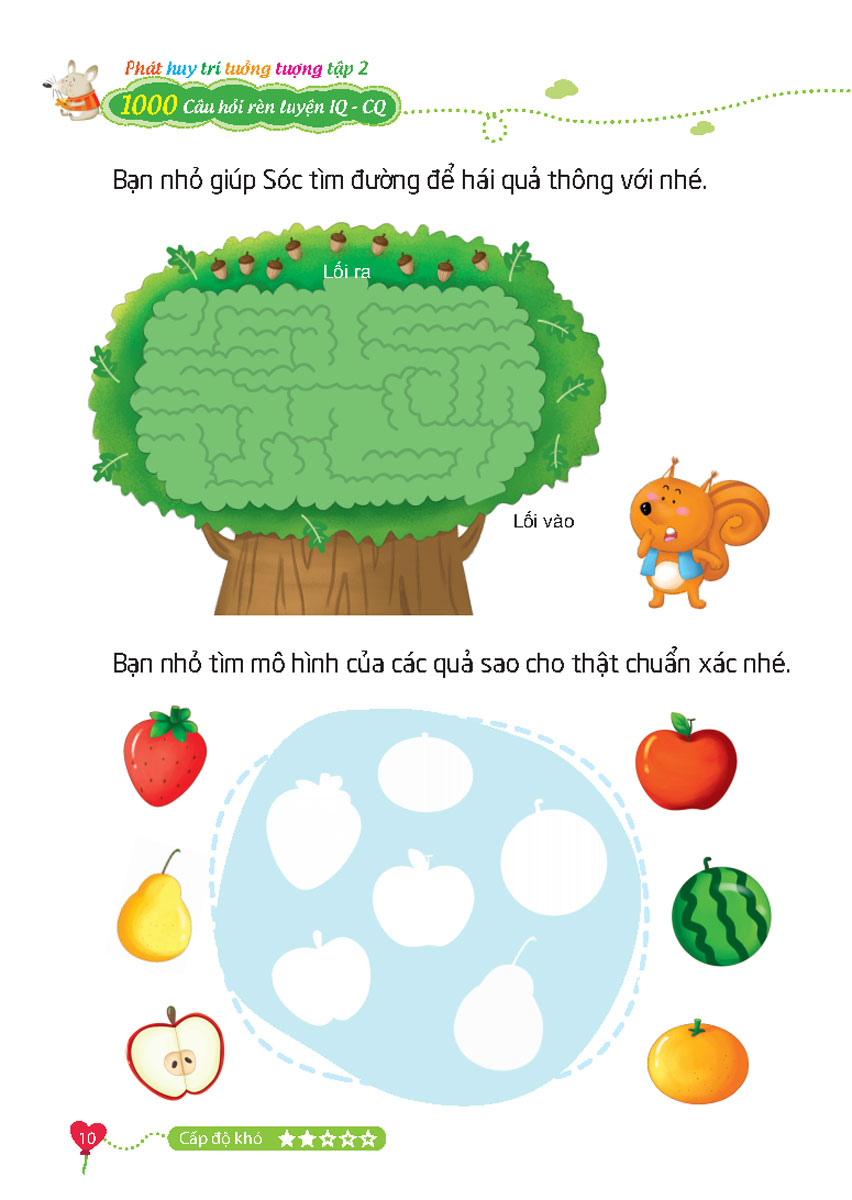 1000 Câu Hỏi Rèn Luyện IQ - CQ - Phát Huy Trí Tưởng Tượng - Tập 2 Những người thành công là những người luôn biết tạo ra sự khác biệt, sự đột phá có hiệu quả cả trong suy nghĩ và hành động. Sự hỗ trợ và hướng dẫn của cha mẹ đối với sự tò mò của trẻ, cũng như sự ủng hộ của họ đối với những thứ mà trẻ thích thú, thường là một chỉ số quan trọng cho sự thành công trong tương lai của con hơn bất kỳ điều gì khác. Rèn luyện trí não thông qua các trò chơi trí tuệ là biện pháp rất tốt giúp trẻ em rèn luyện IQ – CQ. Bộ sách “Sân chơi trí tuệ cho trẻ – 1000 Câu hỏi IQ – CQ” gồm 4 chủ đề với 4 kĩ năng khác nhau, mỗi chủ đề gồm 2 tập: