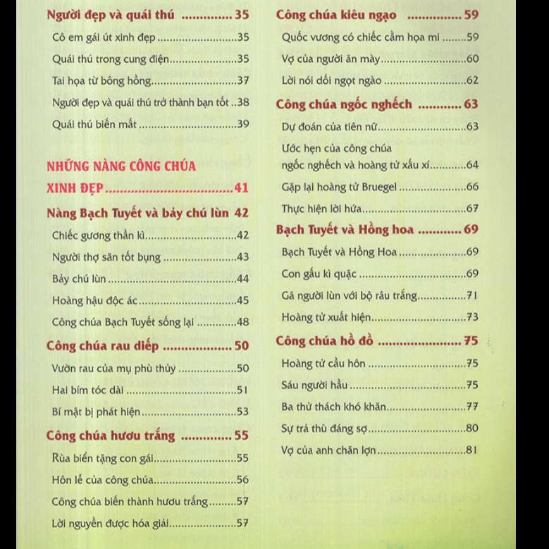 1.Những câu chuyện về bé trai 2. Những câu chuyện về bé gái 3. Những câu chuyện đẹp 4. những câu chuyện về các nàng công chúa 5. Những câu chuyện phép thuật thần chú