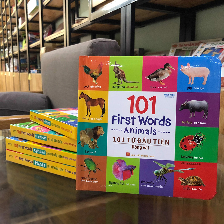 101 First Words/ 101 từ đầu tiên là những cuốn sách Anh – Việt vô cùng bổ ích dành cho các bé từ 2 đến 7 tuổi bắt đầu tập nói tiếng Anh. Bé sẽ được phát triển vốn từ tiếng Anh thông qua các chủ đề gần gũi như Giao thông, Bảng chữ cái, Các vật dụng trong nhà hay các chủ đề mang tính khám phá như Động vật… Không những thế, việc chọn lựa phương pháp chuyển tải thú vị của cuốn sách đã mở ra cho các em một thế giới hình ảnh sinh động và đầy màu sắc, giúp bé tiếp thu kiến thức và ghi nhớ dễ dàng hơn.