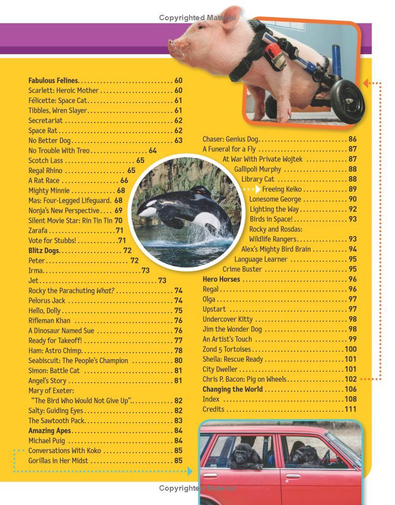 Heroes come in all shapes and sizes -- and many hail from the animal kingdom! Get ready to meet animals that made significant contributions to mankind and accomplished great things in their lifetimes. From top dog Sergeant Stubby, who earned a medal for his brave actions in World War I, to Winter, the courageous dolphin who received a prosthetic tail, this collection of short stories is inspirational, hilarious, and action-packed. Each tale is paired with amazing National Geographic photos and loads of animal facts to offer tons of fuzzy, furry, feathery fun on every page.