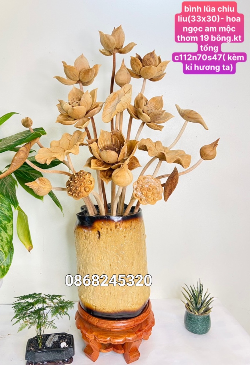 1 bình hoa sen 21 cành ,phong thủy trang trí phòng khách ,phòng thờ bằng gỗ hương đỏ đẹp lung linh   Bình vôi đắp trầu cau men rạn cao 35cm