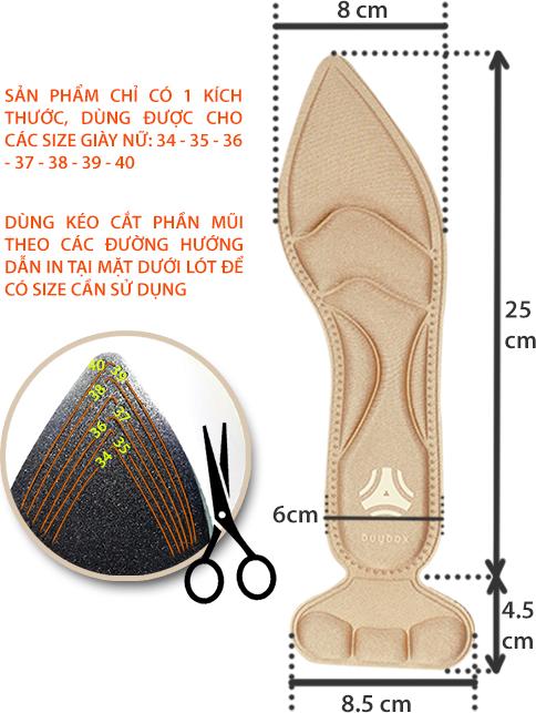 CÔNG DỤNG NỔI BẬT Lót giày nguyên bàn chân đa năng buybox là sự kết hợp giữa lót giày và lót giảm size giày. Lót mũi giày đệm êm ngón chân cũng có công dụng