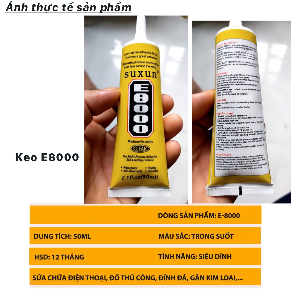 Mua tại TiktokKEO DÁN HẠT ĐÁ E8000 15ML - 25ML - 50ML - 110ML
