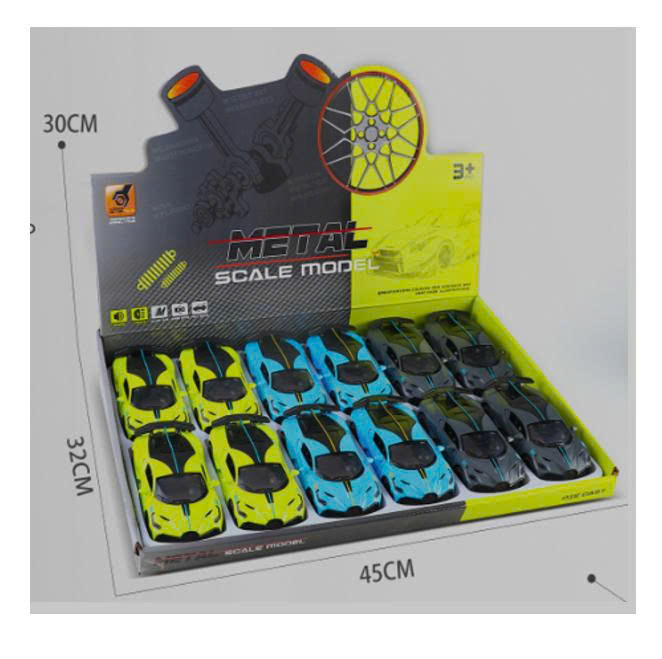 1087-8 – Mô hình ô tô sắt 12 xe/hộp (KT 7.3x2.7x2.5cm) Mô hình ô tô 1087-8 gồm 12 xe trong một hộp, với thiết kế mô phỏng nhiều kiểu dáng xe khác nhau. Kích thước