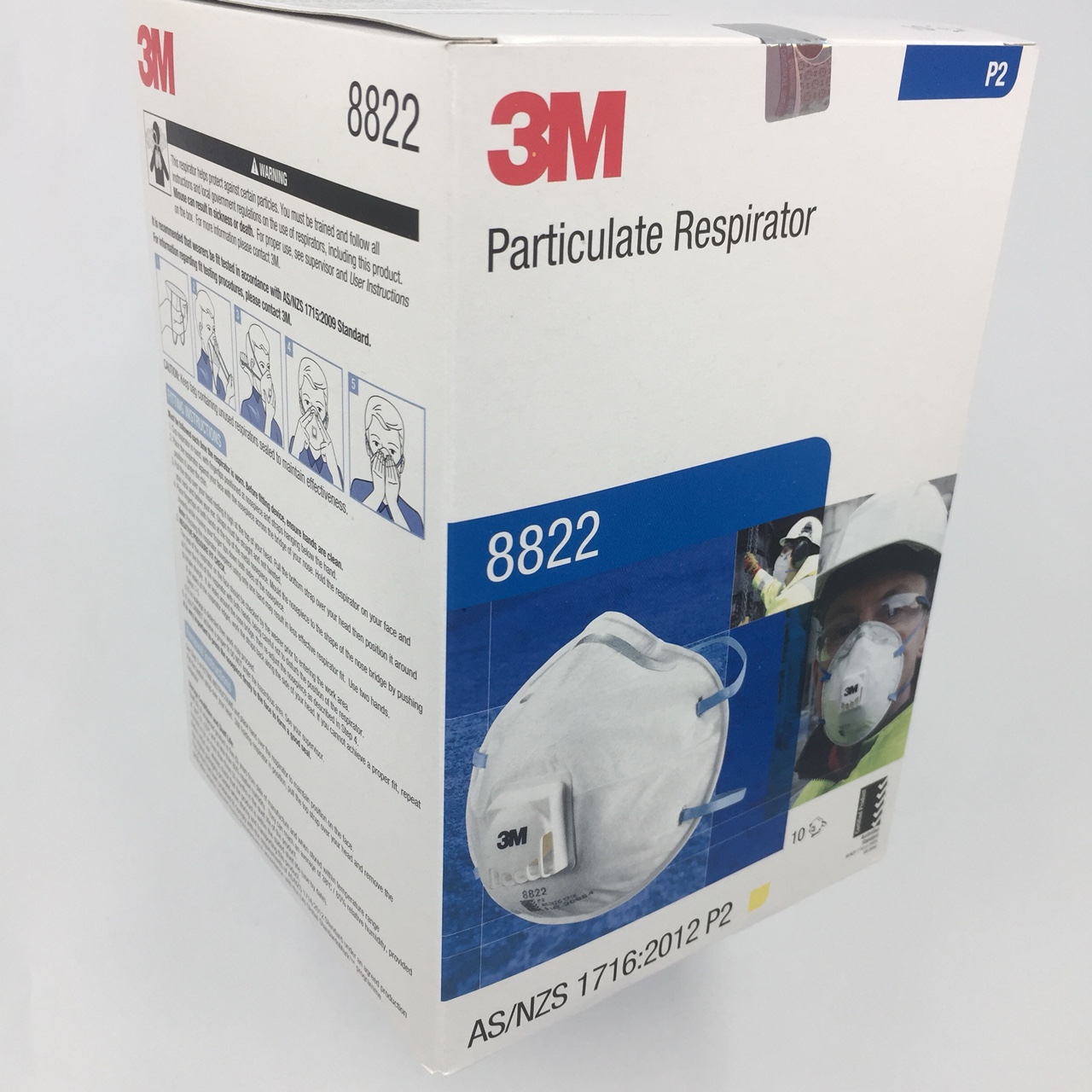 Khẩu trang lọc bụi 3M 8822: là khẩu trang có van thở có trọng lượng nhẹ, mang lại thoải mái và bảo vệ hiệu quả đường hô hấp khỏi hạt bụi có kích thước nhỏ. Hình dạng lồi, thiết kế dây đeo đôi, có miếng bọt mũi và thanh kẹp đảm bảo độ kín khít với nhiều kích cỡ khuôn mặt.
