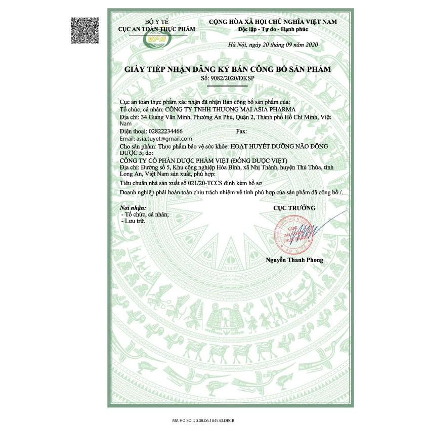 ✨[5 HỘP] Viên uống hoạt huyết dưỡng não Đông Dược 5 Asia Pharma hỗ trợ thiểu năng tuần hoàn não - Hộp 30 viên