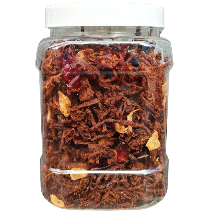 Thơm ngon, hợp vệ sinh Khô heo được làm từ thịt Heo sạch,tươi, miếng thịt hồng hào chế biến nóng hổi ngay nên luôn giữ được độ chắc dai bên ngoài nhưng lại mềm và