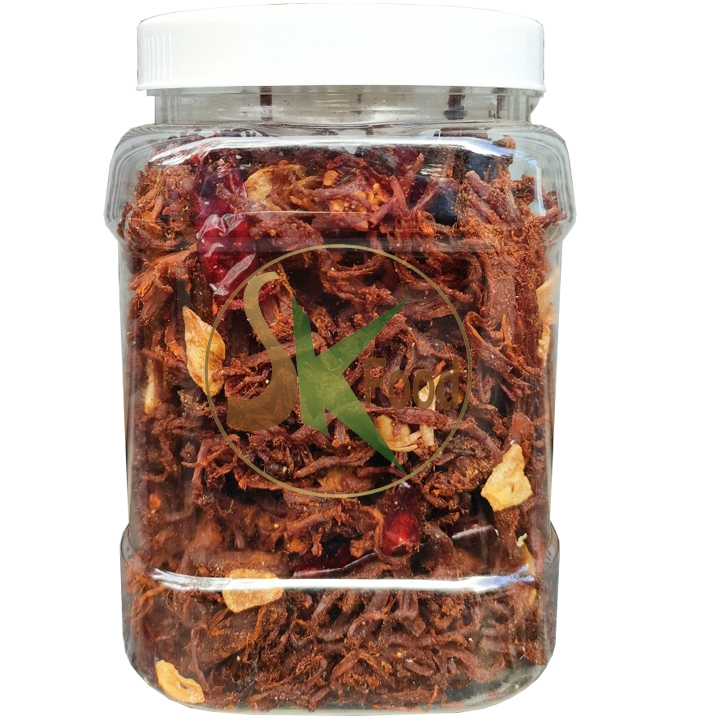 Xuất xứ : Việt Nam. Ngày sản xuất: In trên bao bì Trọng lượng: In trên bao bì Thương Hiệu SK FOOD Sản phẩm có giấy chứng nhận an toàn vệ sinh thực phẩm. Hướng dẫn sử dụng: Dùng trực tiếp, không cần chế biến. Hướng dẫn bảo quản: Nơi khô ráo thoáng mát, tránh ánh nắng mặt trời. Dùng không hết có thể đóng kín miệng nắp để dùng lần sau. Không sử dụng sản phẩm đã hết hạn. Được lựa chọn từ nguyên liệu thịt tươi nguyên chất 100%, đảm bảo không pha trộn bột hay thành phần có hại cho sức khỏe. Kết hợp cùng các gia vị như tỏi, nước mắm, ớt…giúp món ăn đậm đà, cay vừa, phù hợp cho mọi lứa tuổi. Món ăn này là món ăn vặt hot nhất mọi thời điểm, bạn có thể mang theo khi đi du lịch cùng mọi người để nhâm nhi hoặc ăn vặt lúc xem phim, lai rai cùng chiến hữu bên bàn nhậu…. LƯU Ý: SẢN PHẨM CÓ THỂ THAY ĐỖI MẪU MÃ TÙY VÀO TỪNG ĐỢT NHẬP HÀNG