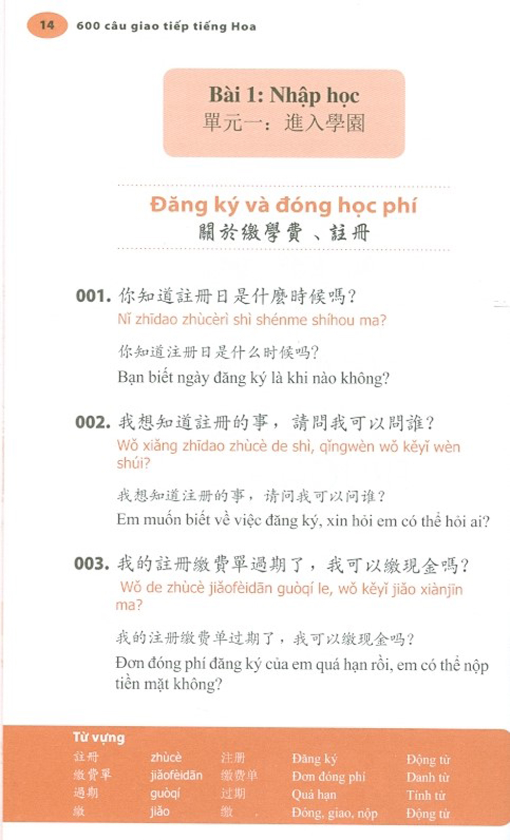 Mua tại TiktokBộ sách 600 Câu Giao Tiếp Tiếng Hoa gồm 3 cuốn với các chủ đề: Công sở, Cuộc sống hàng ngày, Mua sắm và Ăn uống. Nội dung bài học thiết kế phù hợp theo từng chủ đề cụ thể, mỗi câu đều kèm theo phiên âm, dịch nghĩa, từ vựng, thuận tiện cho việc học phát âm và tra cứu ngữ nghĩa. Sách phân biệt rõ sự khác nhau trong cách sử dụng từ ngữ ở Đài Loan và Trung Quốc. Nếu bạn không có thời gian đến lớp mà muốn giao tiếp tốt, thì bộ sách sẽ là trợ thủ đắc lực cho bạn.