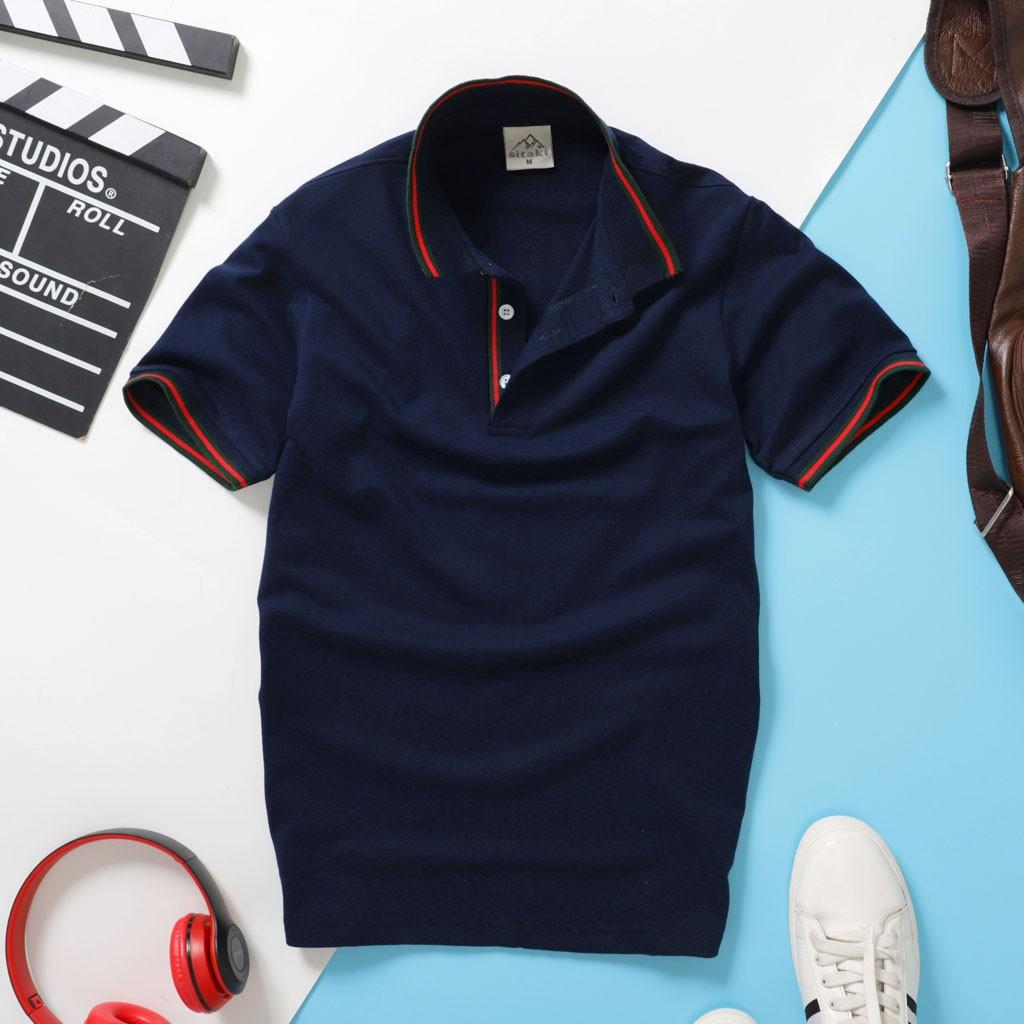 Áo thun nam cổ bẻ phối viền, ngắn tay.
