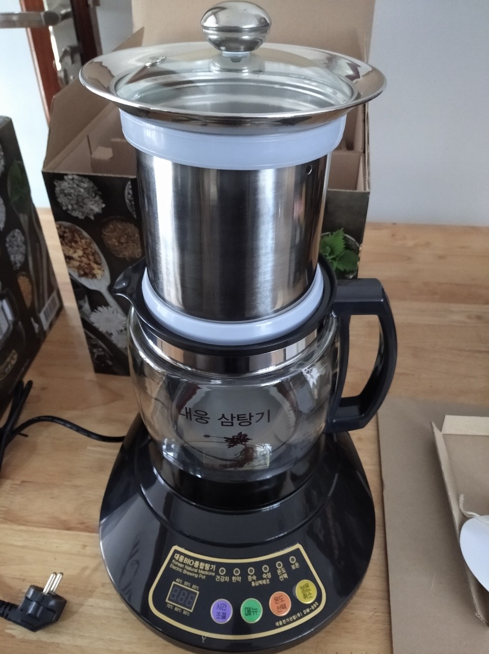 Ấm sắc thuốc Daewoong DW-390-G Hàn Quốc giỏ inox, bình thủy tinh