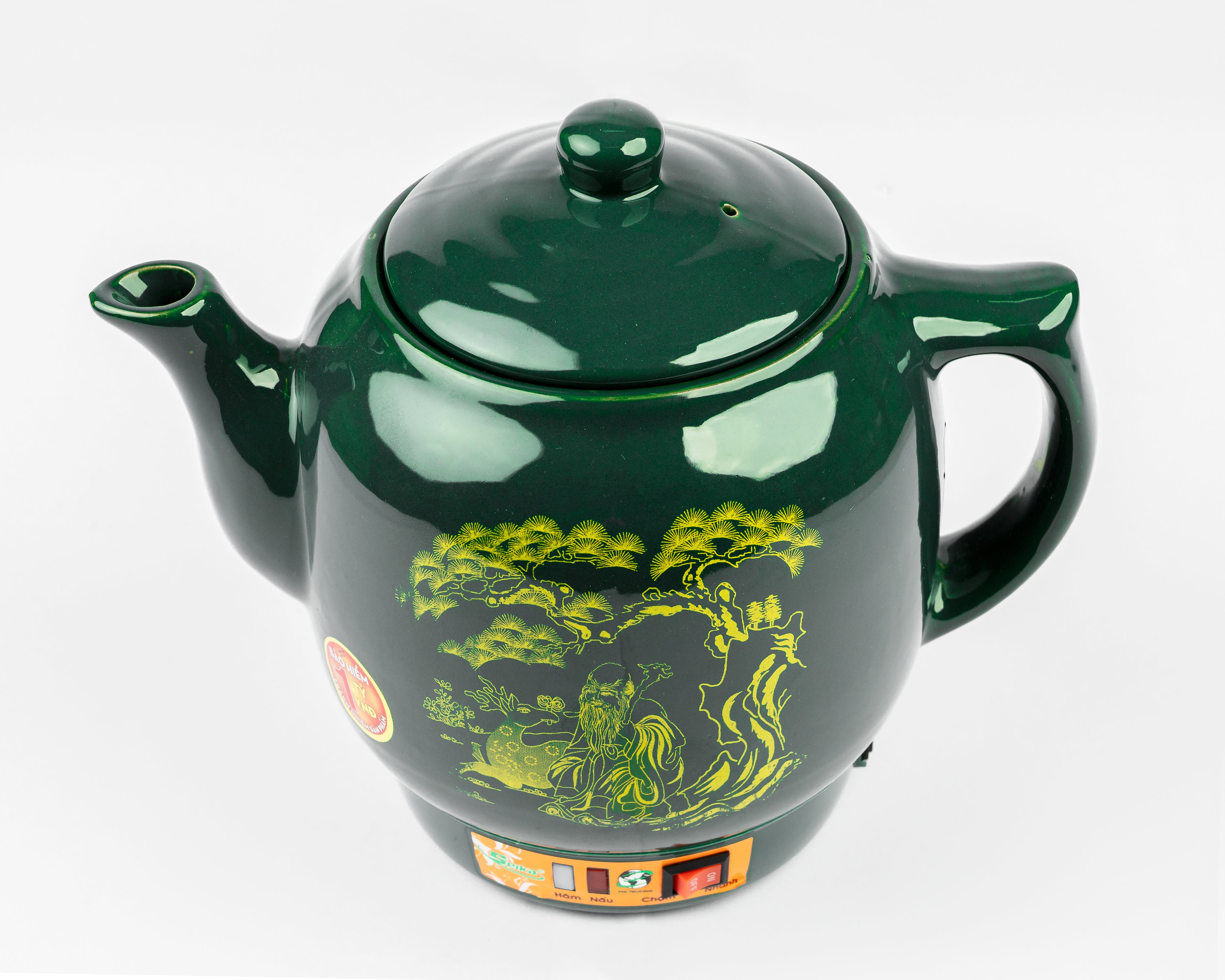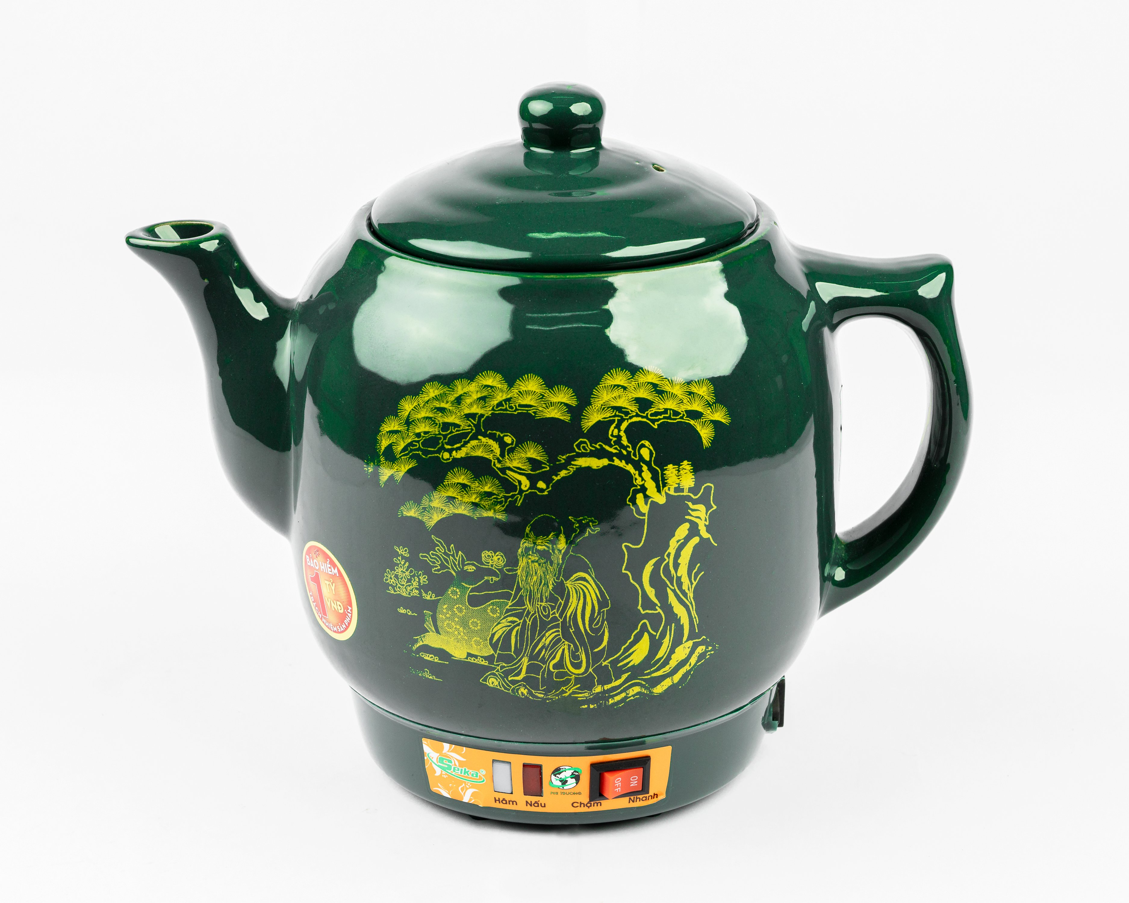 Dung tích: 2.8 L- Công suất: 450W- Thân ấm thiết kế với hoa văn ông già - củ sâm- Nguồn gốc sứ từ làng gốm Bát Tràng nổi tiếng- Chất liệu gốm được nung ở