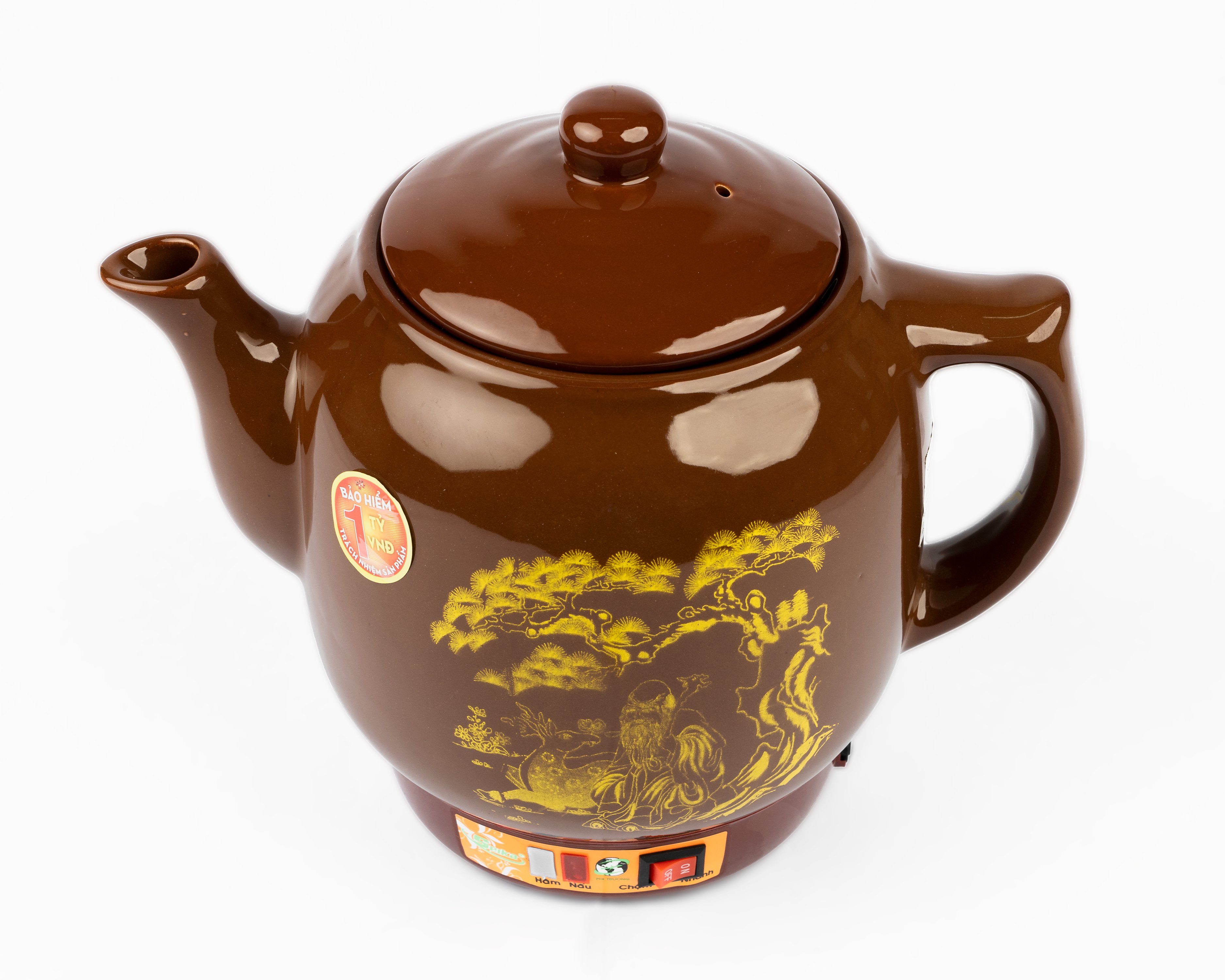 Dung tích: 2.8 L- Công suất: 450W- Thân ấm thiết kế với hoa văn ông già - củ sâm- Nguồn gốc sứ từ làng gốm Bát Tràng nổi tiếng- Chất liệu gốm được nung ở