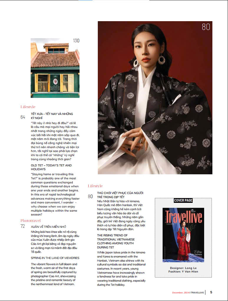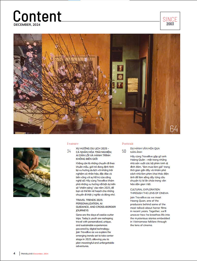 Dù lựa chọn ra sao, tất cả những cảm hứng, câu chuyện thú vị và những khoảnh khắc đẹp đều hiện diện trong ấn phẩm lần này. Travellive xin chúc Quý độc giả có một khởi đầu mùa Xuân tràn đầy năng lượng và ý nghĩa cho năm mới.