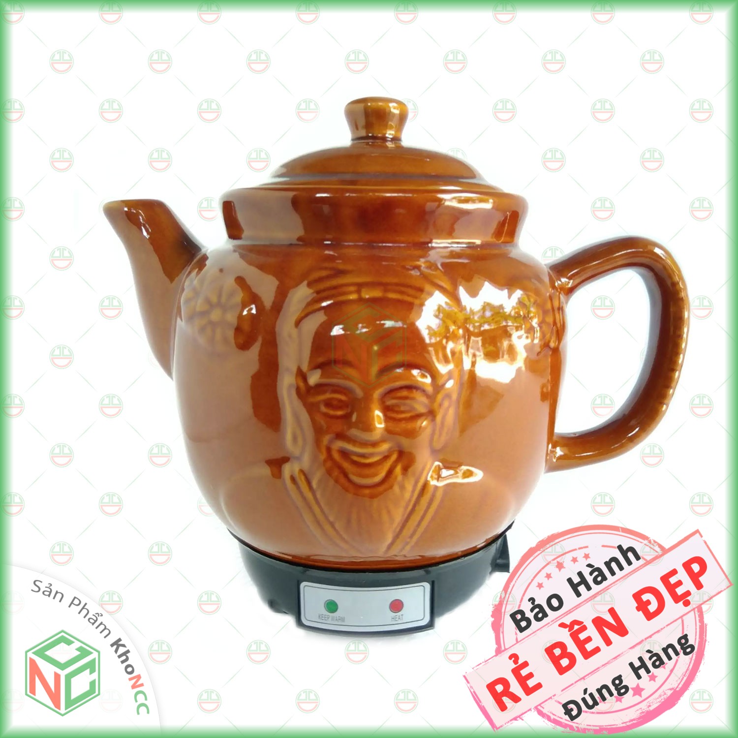 Dung tích: 2.8 L- Công suất: 450W- Thân ấm thiết kế với hoa văn ông già - củ sâm- Nguồn gốc sứ từ làng gốm Bát Tràng nổi tiếng- Chất liệu gốm được nung ở