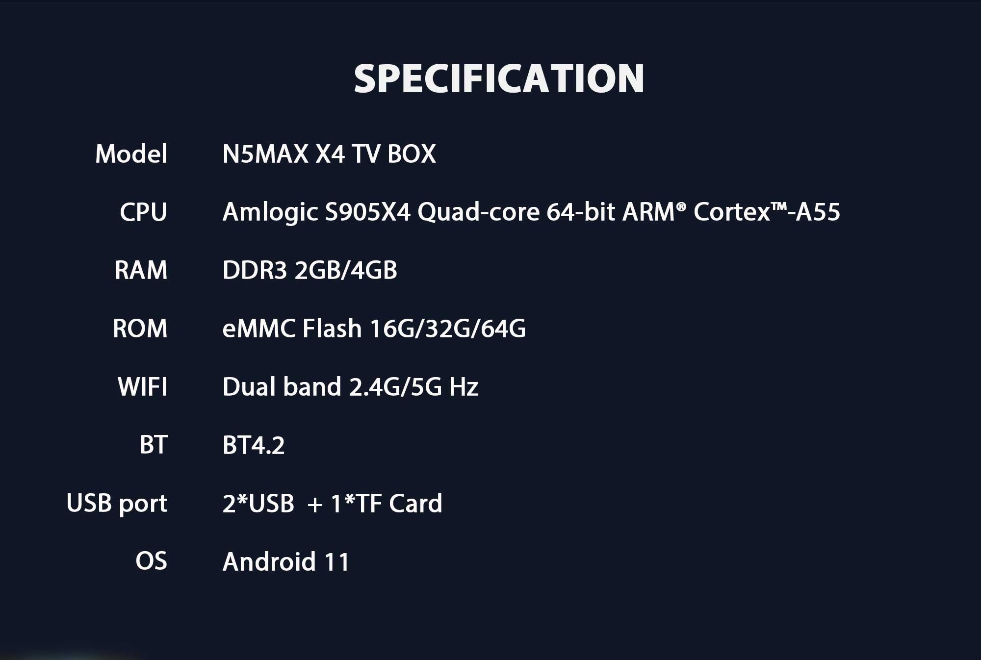 - RAM: 4GB - S905X4 , ROM: 32G