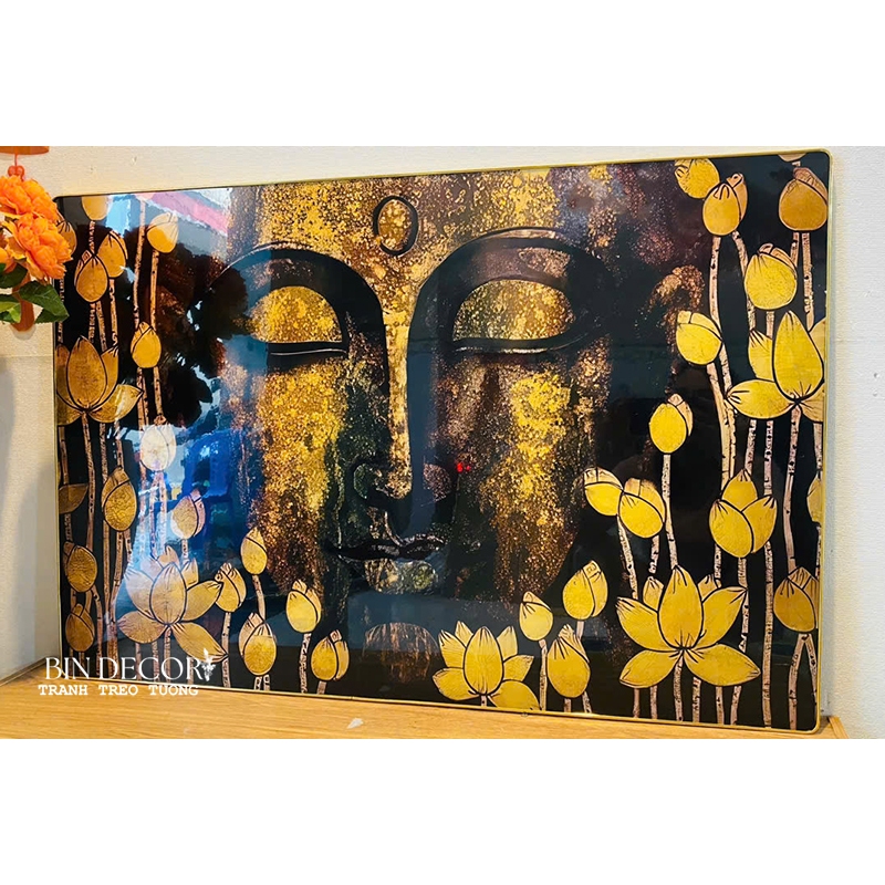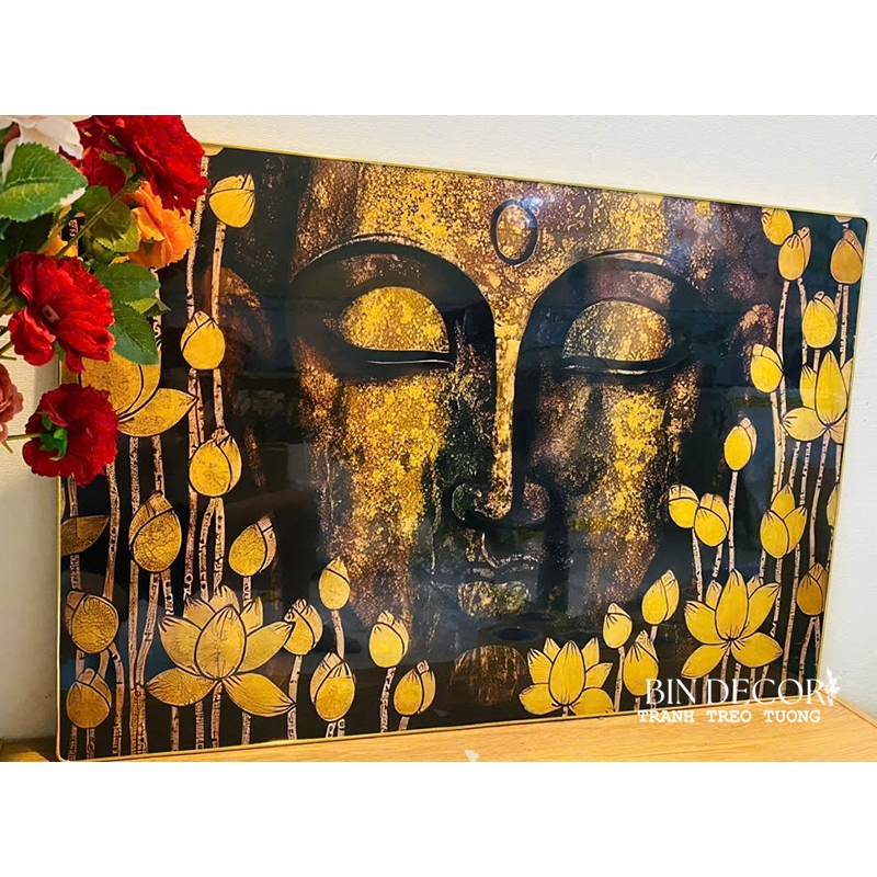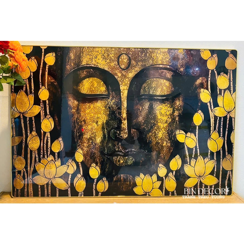 ✨(ẢNH THẬT) Tranh treo tường phật trong hoa sen vàng tranh trang trí phòng thờ nơi tôn nghiêm