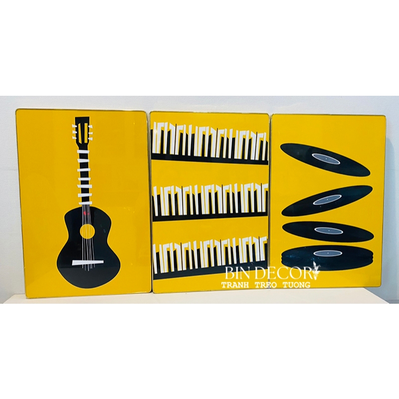 Tranh treo tường trang trí decor âm nhạc 25 - Kích thước của tranh : Kích thước : 25x35cmx3 tấm - 30x45cmx3 tấm - 40x60cmx3 tấm - Chất liệu : Tráng gương - kim sa