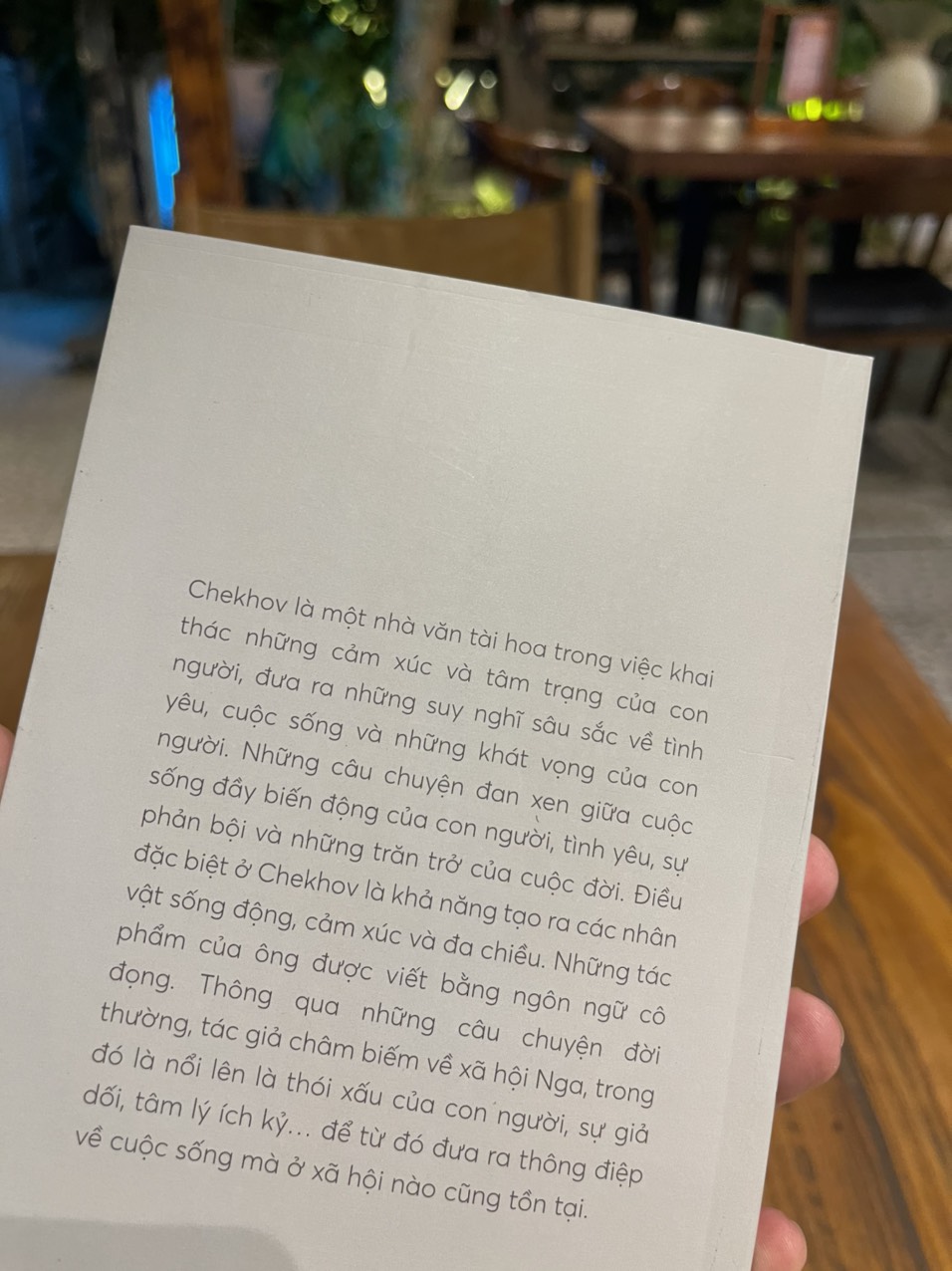 Anton Pavlovich Chekhov sinh (1860-1904) là nhà soạn kịch, nhà văn viết truyện ngắn nổi tiếng người Nga. Tác giả của hàng trăm truyện ngắn với các tác phẩm tiêu biểu: Phòng 6, Nhà tu hành vận đồ đen, Người đàn bà có con chó nhỏ, Người trong bao, Khóm phúc bồn tử, Về tình yê Và các vở kịch tiêu biểu: Chim hải âu, Cậu Vanya, Ba chị em, Vườn anh đà Chekhov là một nhà văn tài hoa trong việc khai thác những cảm xúc và tâm trạng của con người, đưa ra những suy nghĩ sâu sắc về tình yêu, cuộc sống và những khát vọng của con người. Những câu chuyện đan xen giữa cuộc sống đầy biến động của con người, tình yêu, sự phản bội và những trăn trở của cuộc đời. Điều đặc biệt ở Chekhov là khả năng tạo ra các nhân vật sống động, cảm xúc và đa chiều. Những tác phẩm của ông được viết bằng ngôn ngữ cô đọng. Thông qua những câu chuyện đời thường, tác giả châm biếm về xã hội Nga, trong đó là nổi lên là thói xấu của con người, sự giả dối, tâm lý ích kỷ để từ đó đưa ra thông điệp về cuộc sống mà ở xã hội nào cũng tồn tại.