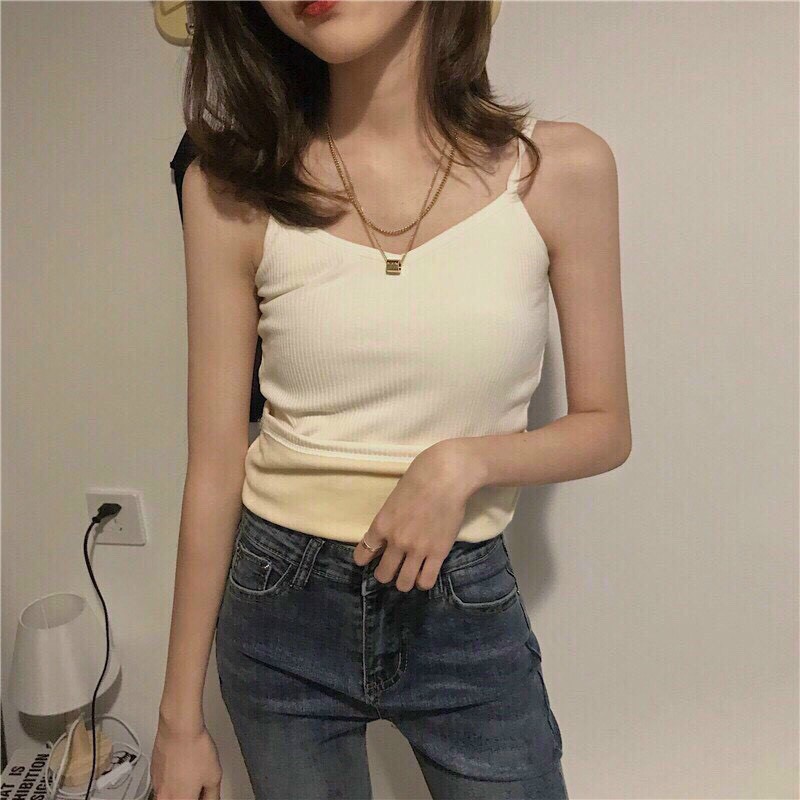 Áo hai dây camisole cơ bản, là chiếc aó thiết yếu mà mỗi người phụ nữ đều cần. Mặc lót bên trong, mặc phối cùng áo vest, mặc phối cùng quần shorts váy ngắn đi