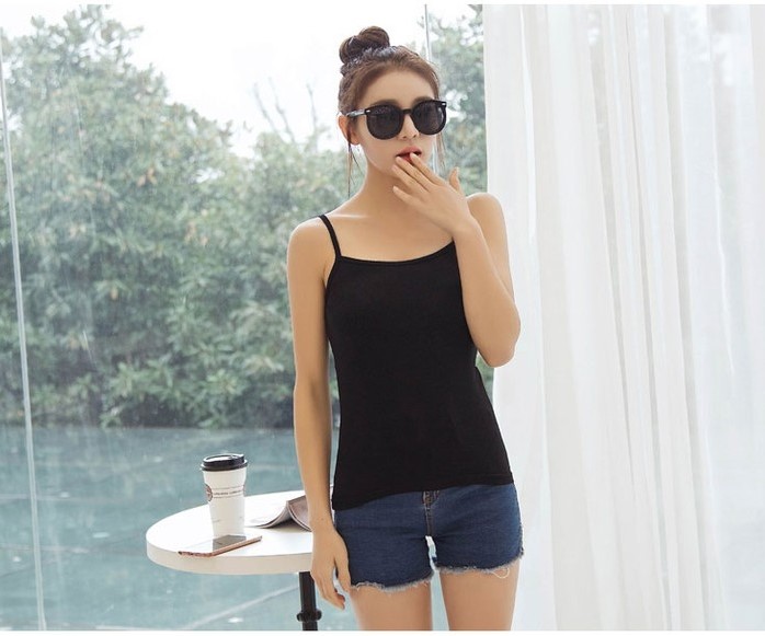 Áo hai dây camisole cơ bản, là chiếc aó thiết yếu mà mỗi người phụ nữ đều cần. Mặc lót bên trong, mặc phối cùng áo vest, mặc phối cùng quần shorts váy ngắn đi