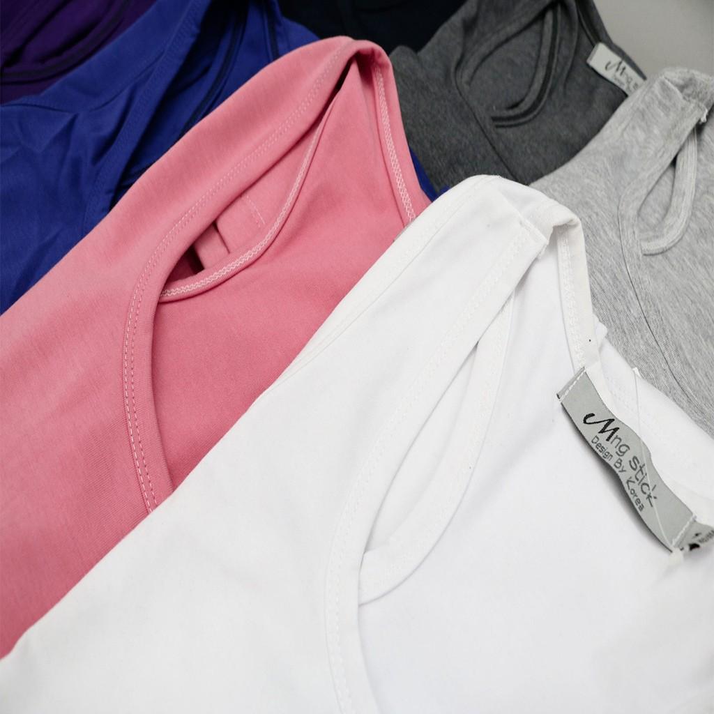 Chất liệu: Vải Thun Gân Dày không để lộ Nếu vải mỏng shop xin hoàn tiền 2 dây sợi to vừa phải, không quá nhỏ, cũng không quá mảnh, không quá to. * Màu áo: