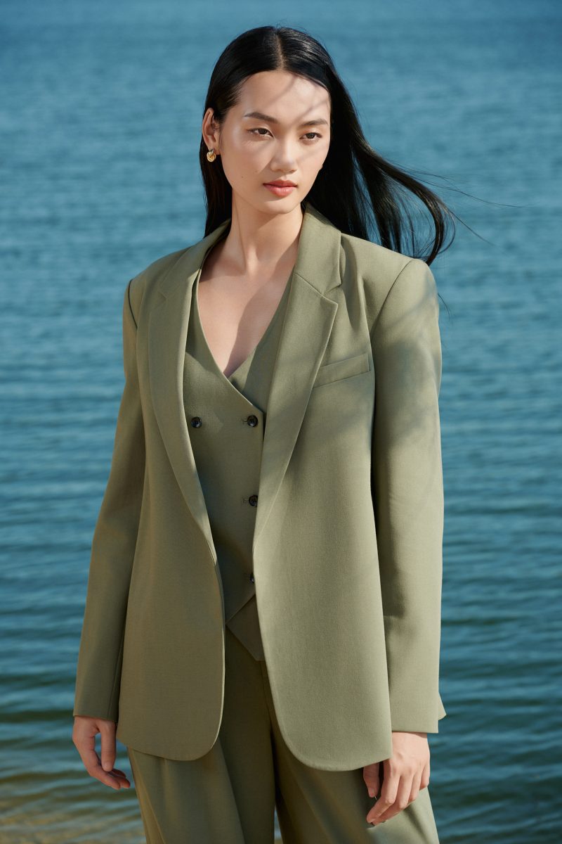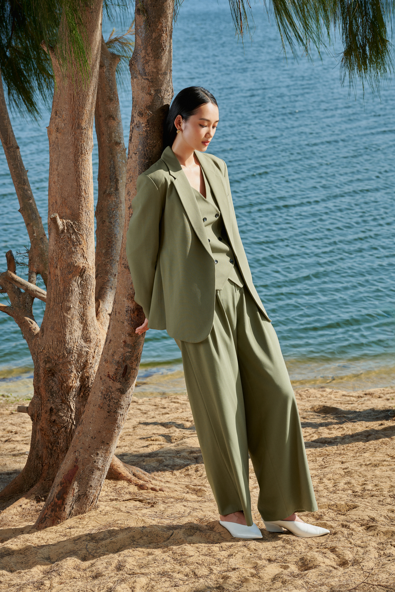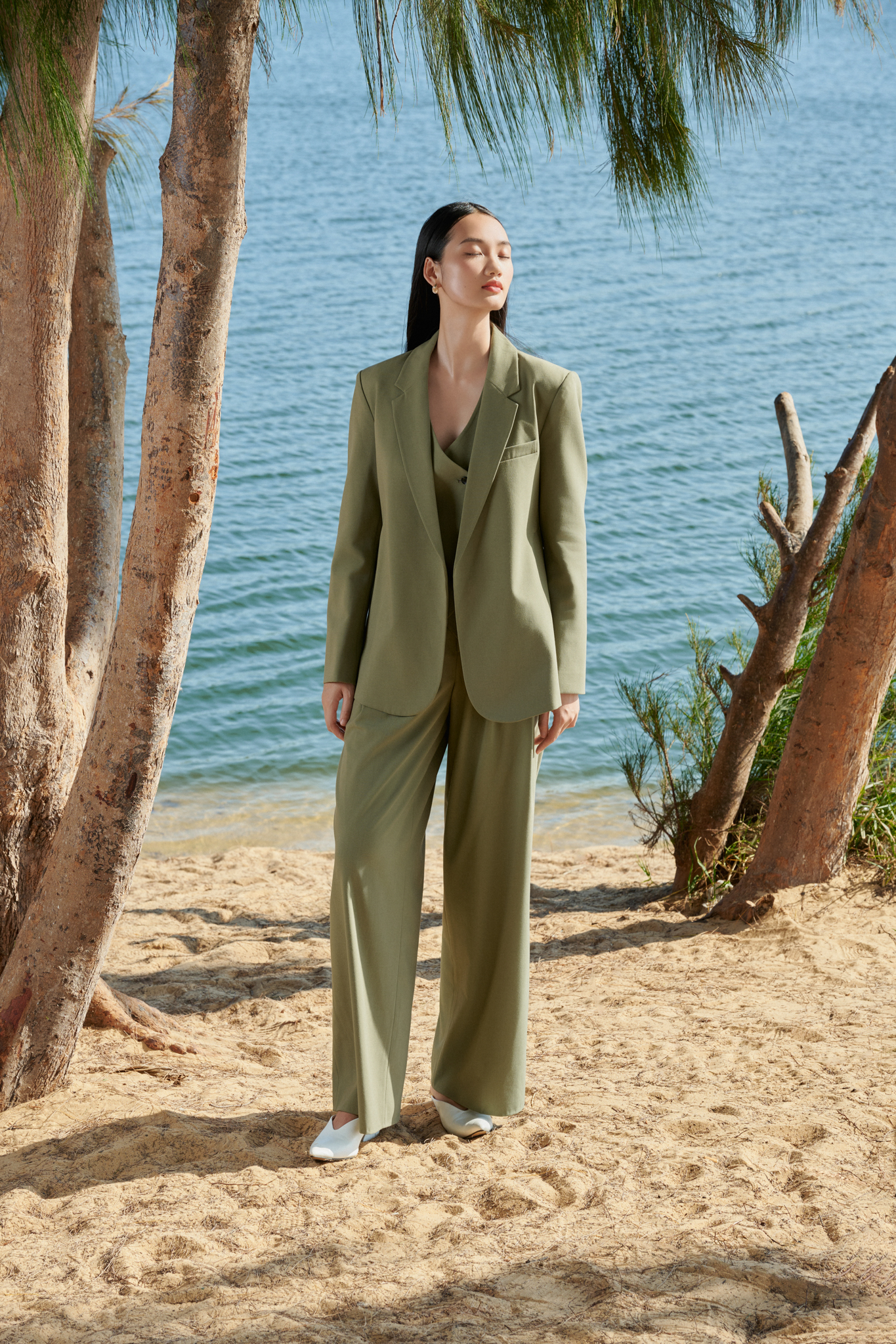1. Thông tin sản phẩm Áo blazer vai rộng, không cổ, cài 2 khuy, tay lỡ dài, có lơ vê. Mỗi lớp vải mềm mại của Vincent Set là sự kết hợp hoàn hảo giữa