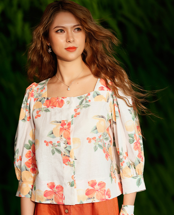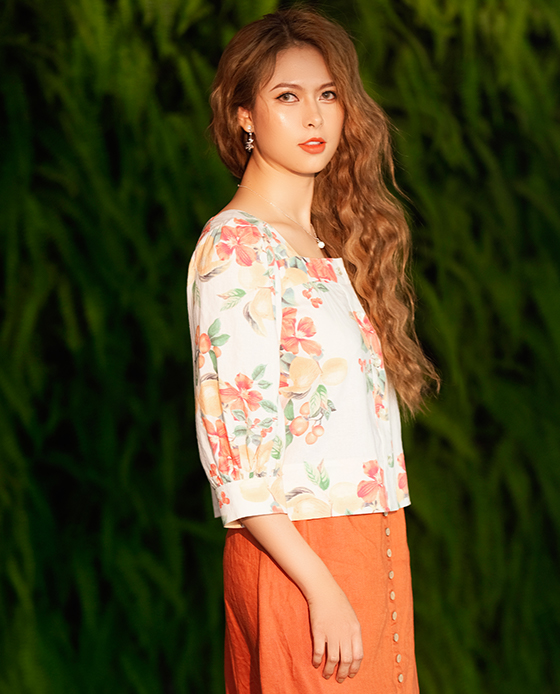 Áo Croptop Linen Hibiscus TOP132 Hoa Dâm Bụt Thời trang thiết kế Hity