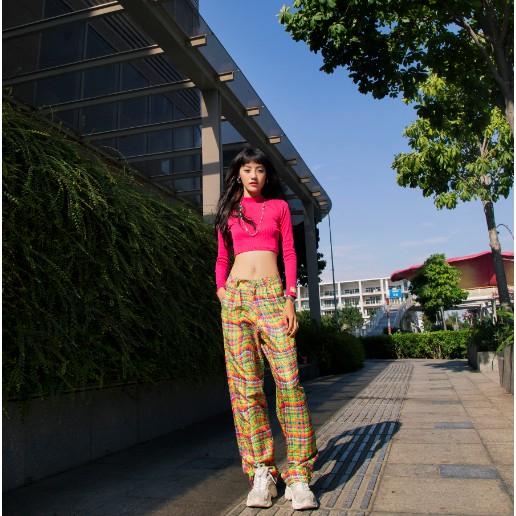 ✨Áo Croptop Tay Dài Hồng TARTAN - T-TitTotTet Croptop / Pink