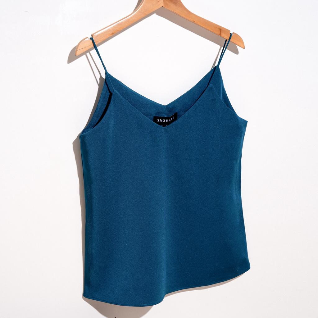 Áo hai dây - Chất liệu: Lụa - Màu: Mountain Blue - Size: S M + Số đo cho size S: Ngực 84cm đến 87cm, dưới 52kg + Số đo cho size M: Ngực 88cm