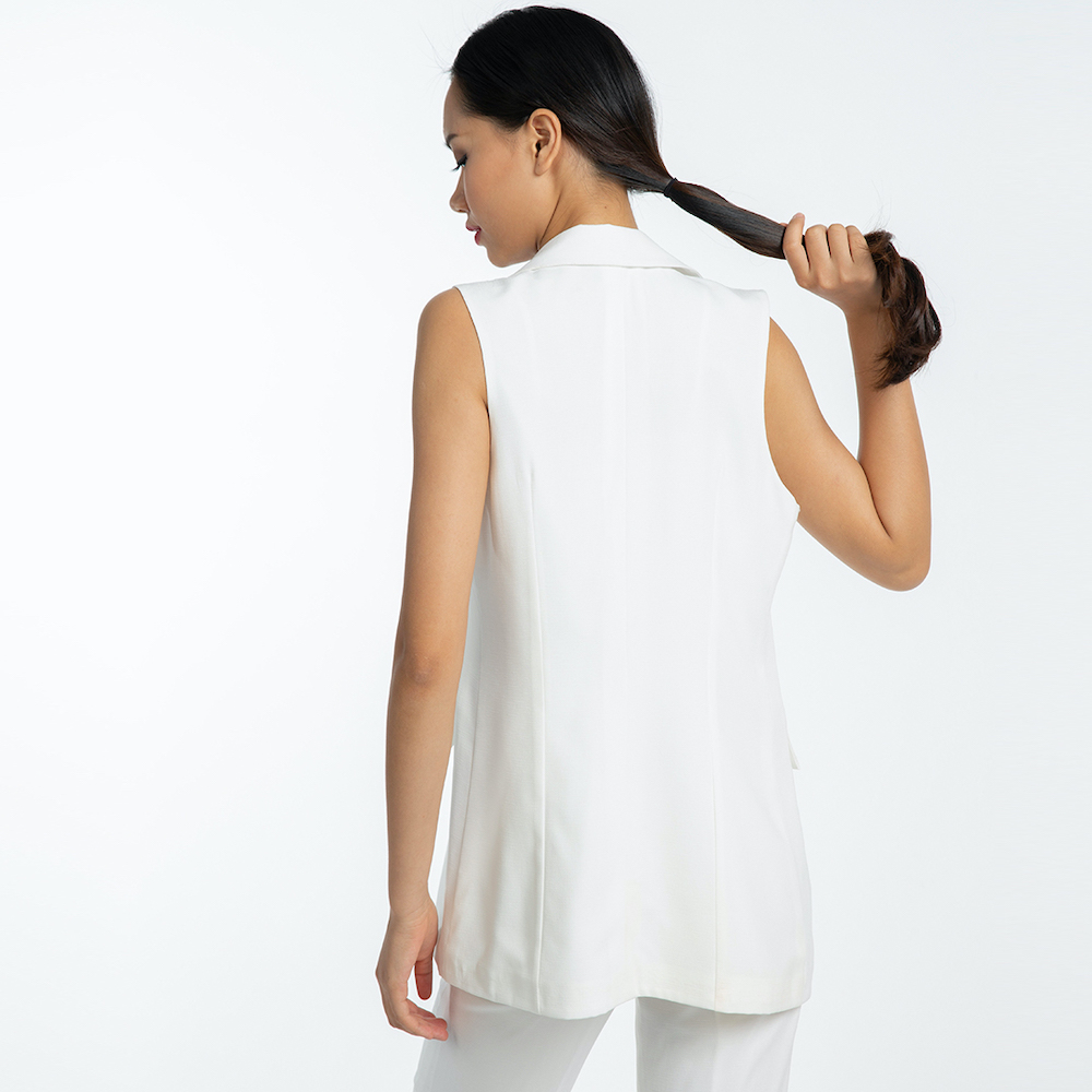 - đặc trưng nổi bật của chiếc áo khoác nữ này chính là thiết kế không tay trẻ trung