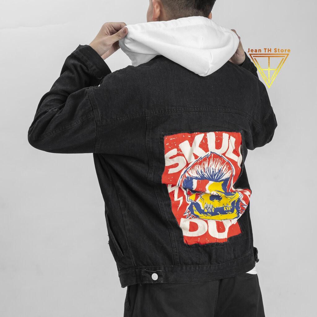 ✨Áo khoác jean nam đen có nón nỉ in Skul Dust, áo khoác bò cá tính, trẻ trung