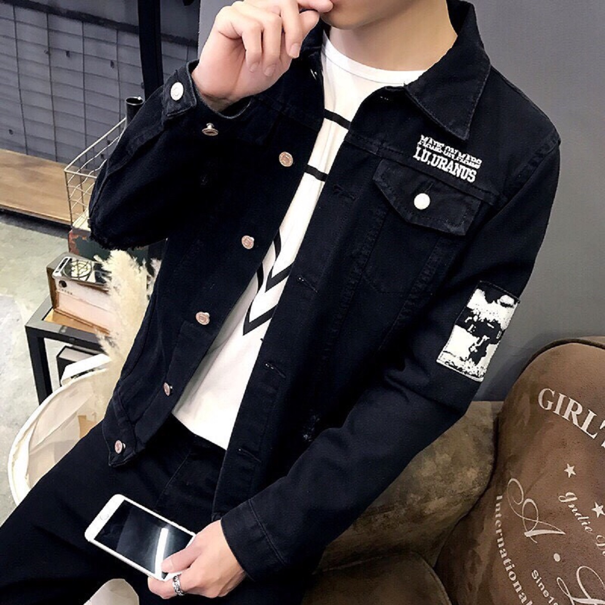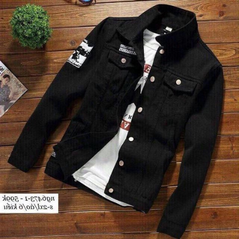 ✨Áo Khoác Jean Nam Đen Huy Hiệu