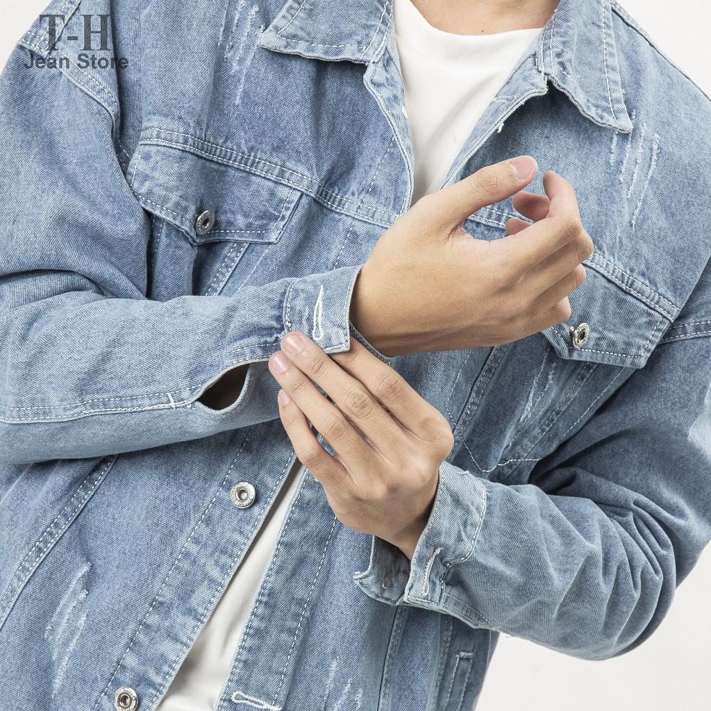 ✨Áo khoác jean nam màu xanh cơ bản cào xước, áo bò thời trang cho nam