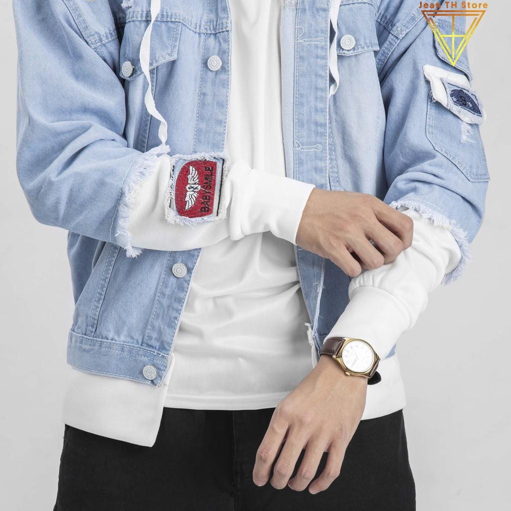 Áo khoác Jean nam tua rua trắng . Thiết kế cực phong cách, tinh nghịch Kết hợp chiếc áo khoác này với đôi giày thể thao nam và mắt kính thời trang Thiết kế khéo léo,