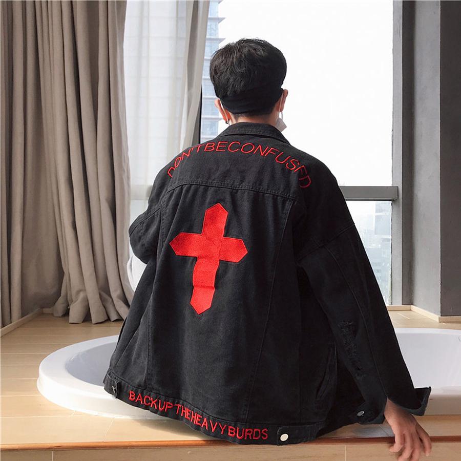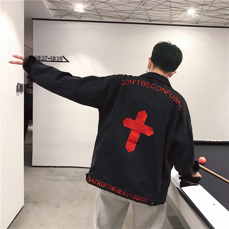 ✨Áo khoác Jeans Nam phối hình chữ Thập thời thượng