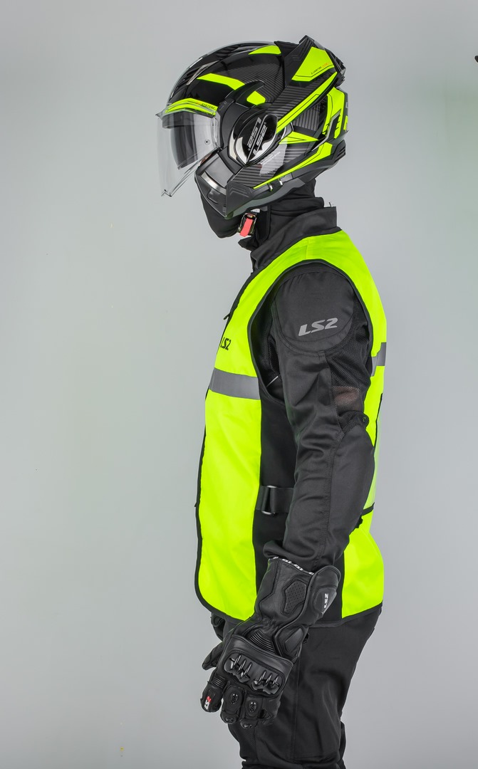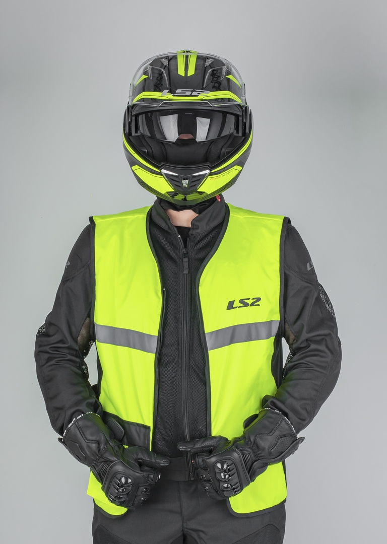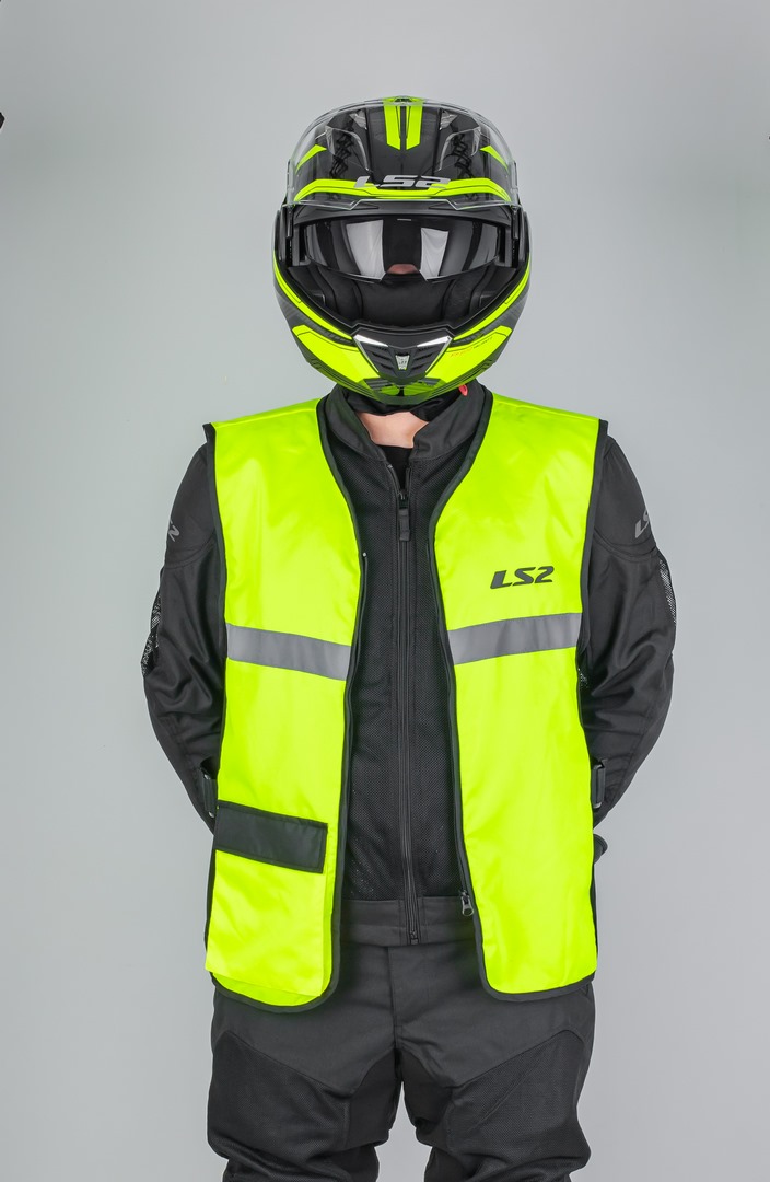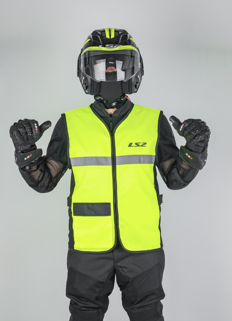 Áo Khoác Phản Quang LS2 Vest Man giúp người mặc an toàn hơn khi di chuyển buổi tối, hiệu quả phản quang tốt.