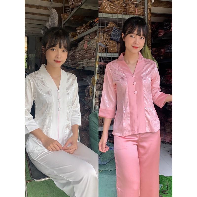 SET ĐỒ LAM ĐI CHÙA ÁO BÀ BA KÈM QUẦN DÀI CHẤT GẤM